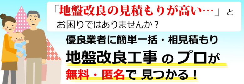大切なあなたの土地、建物、ご予算にマッチした地盤改良の工法の提案、費用の相見積もりが無料、匿名のままで、比較検討出来るのは当サイトだけです。